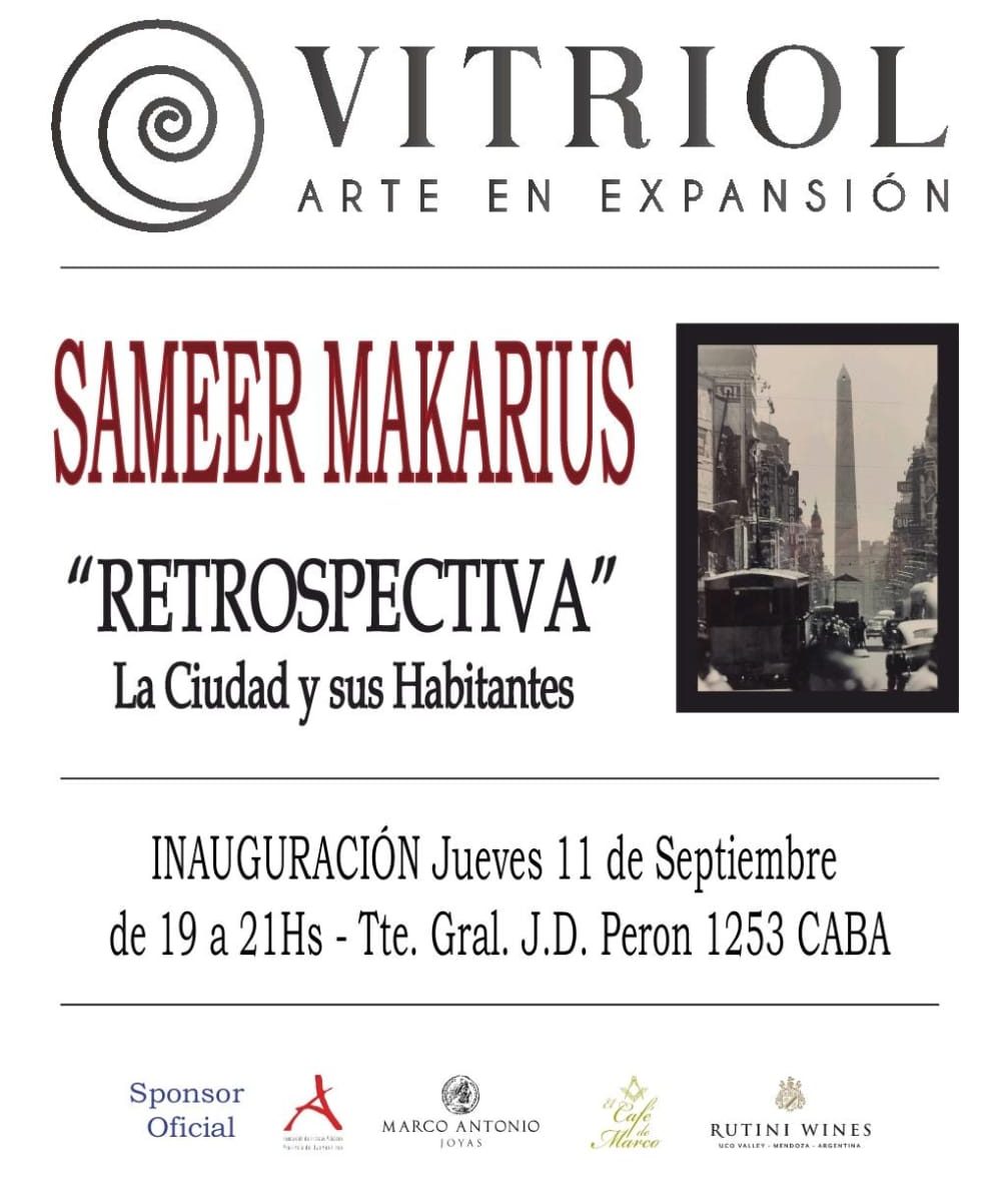 Con el apoyo de Bodega Rutini, El Café de Marco, Marco Antonio Joyas y la Asociación de Artistas Plásticos de la Provincia de Buenos Aires se presenta una muestra fotográfica del reconocido artista Sameer Makarius (1924—2009).
